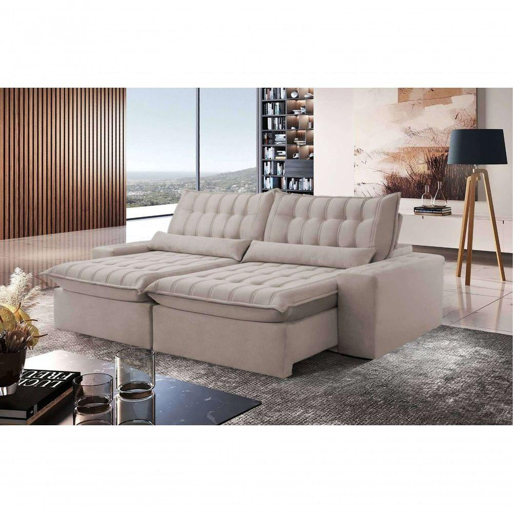 Sofá Petra Retrátil E Reclinável 290cm Espuma D-26 Softy - Bege