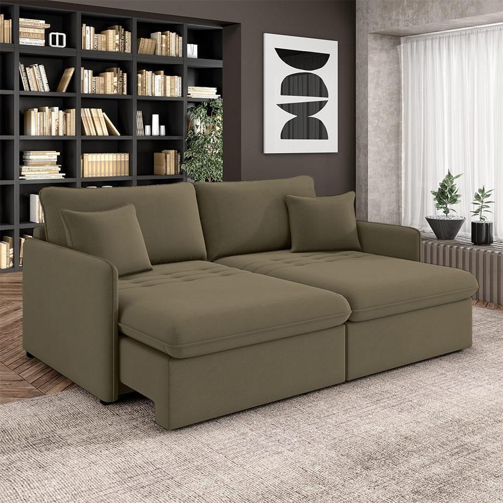 Sofá Reclinável E Retrátil Gandalf Bipartido 154cm Caixa Zero Com Almofadas Veludo Castor