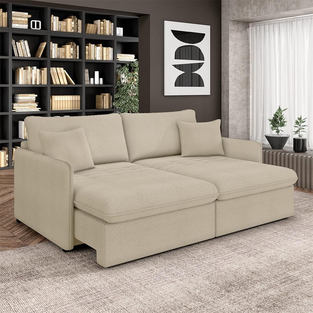 Sofá Reclinável e Retrátil Gandalf Bipartido 194cm Caixa Zero com Almofadas Bouclê Bege G33 - Gran Belo
