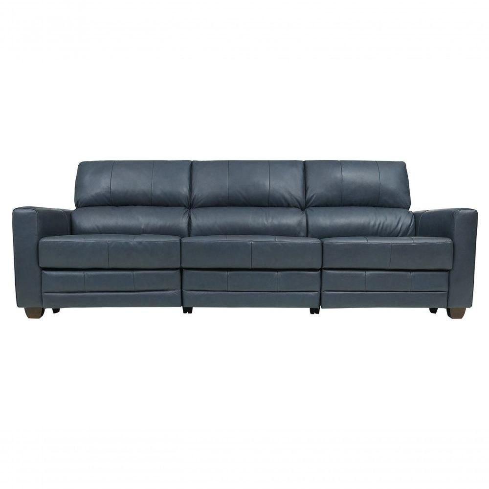 Sofá Reclinável Elétrico De Couro Jordânia 3 Lugares Blue Bicolor Mempra