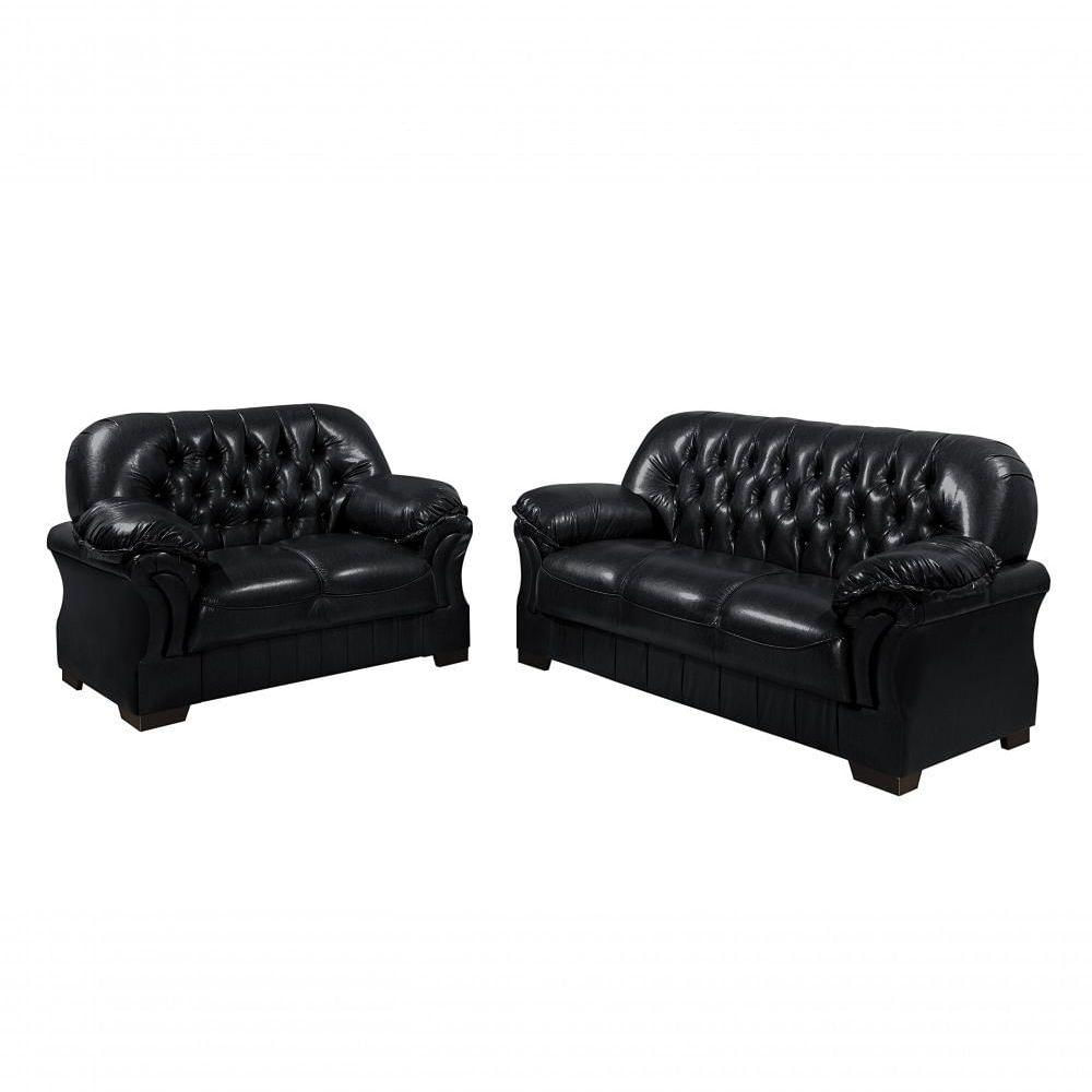 Sofá Rei Conjunto 2 E 3 Lugares Império Estofados Couríssimo Preto 851