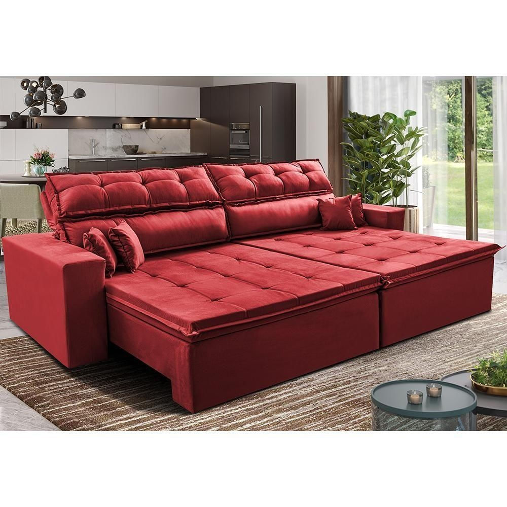 Sofá Retrátil E Reclinável 2,32m Luxos Cama Inbox Velusoft Vermelho