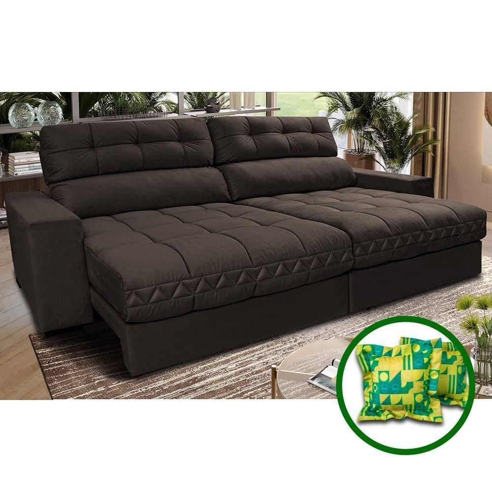 Sofá Retrátil E Reclinável 2,32m Molas Ensacadas Cama Inbox Brasil Velusoft Café