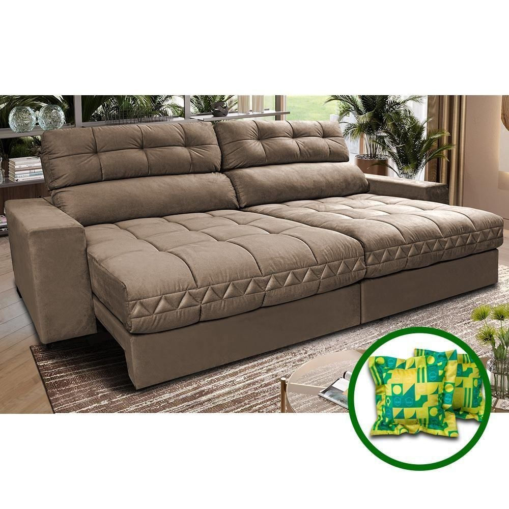 Sofá Retrátil E Reclinável 2,32m Molas Ensacadas Cama Inbox Brasil Velusoft Castor
