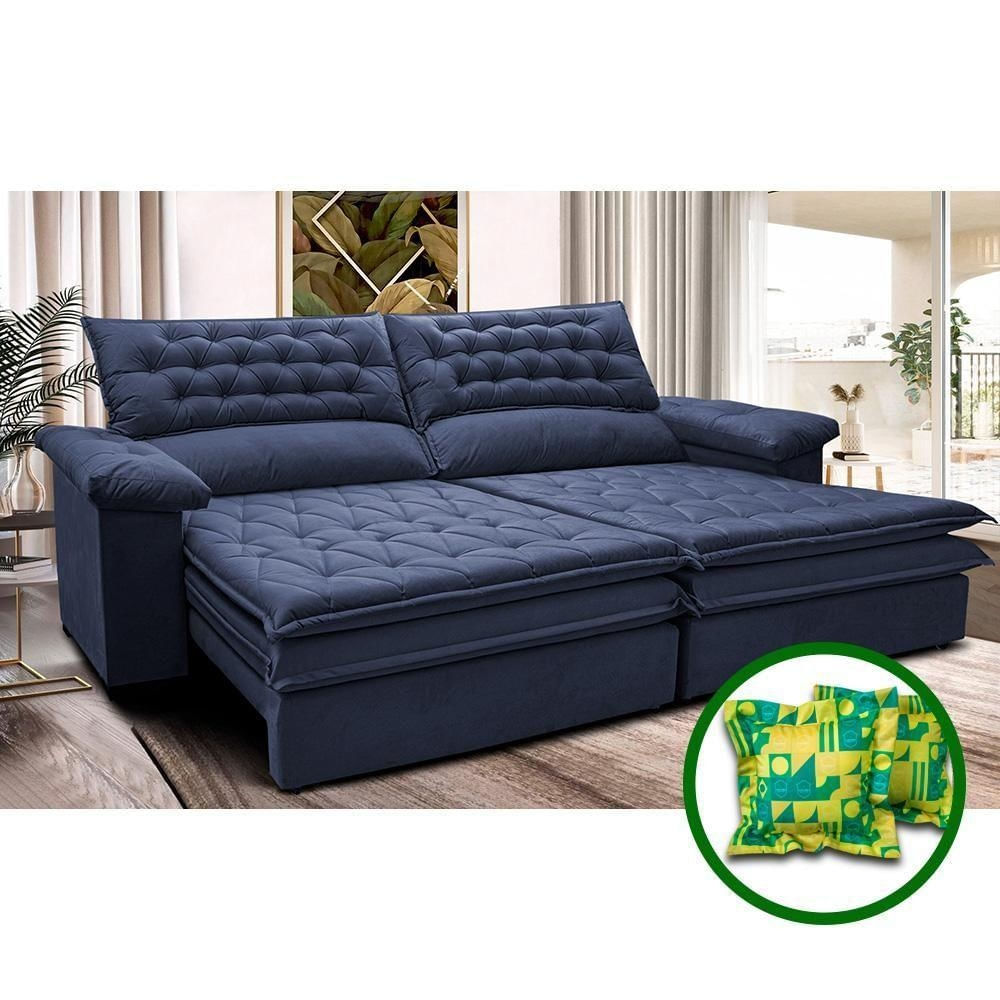 Sofá Retrátil E Reclinável 2,52m Molas Ensacadas Cama Inbox Alemanha De Viscoelástico Velusoft Azul