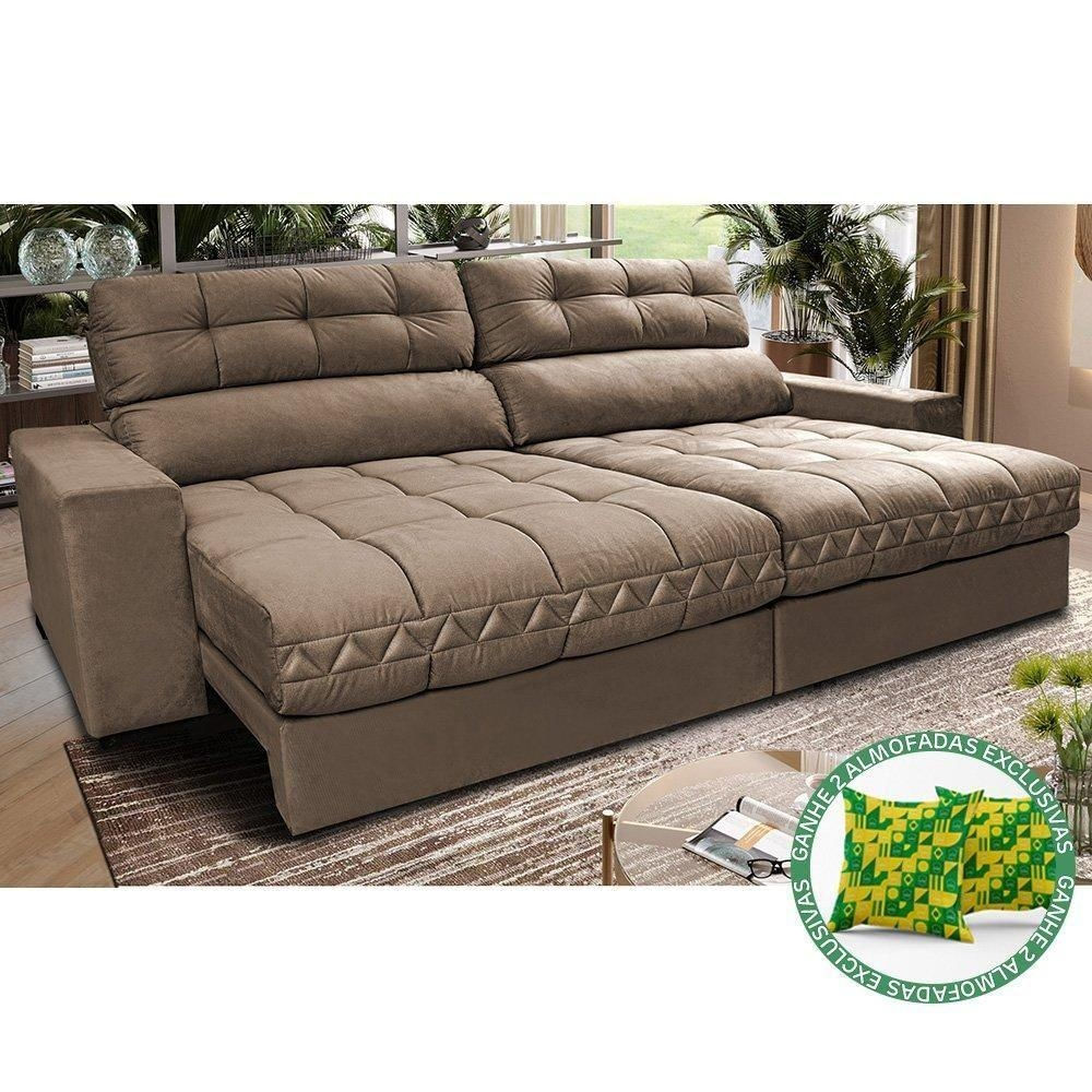 Sofá Retrátil E Reclinável 2,52m Molas Ensacadas Cama Inbox Brasil Velusoft Castor