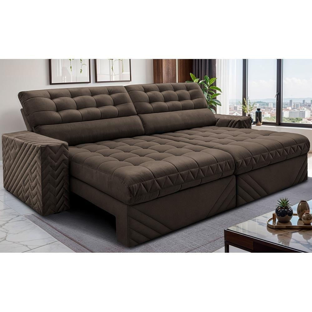 Sofá Retrátil E Reclinável 2,70m Molas Ensacadas Max Spring. Velusoft Cama Inbox Café