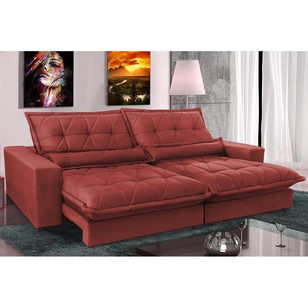 Sofá Retrátil E Reclinável 2,72m Com Molas Ensacadas Cama Inbox Soft Tecido Suede Vermelho
