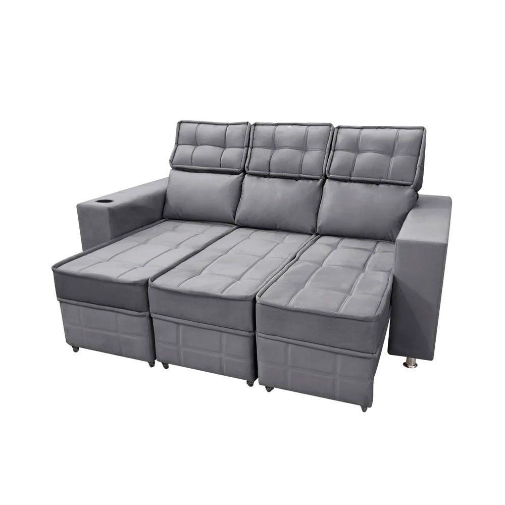 Sofá Retrátil E Reclinável 3 Lugares Londres 1.90cm Com Molas Suede Speciale Home Chumbo