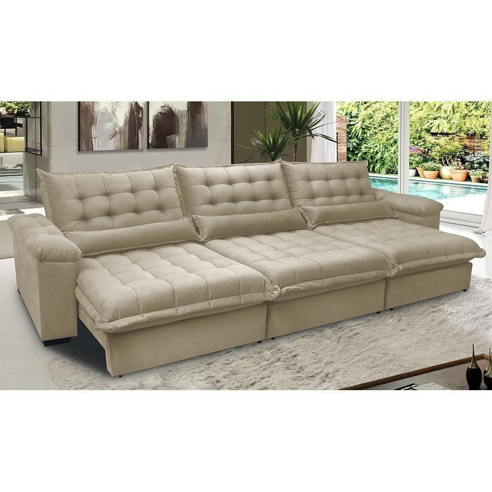 Sofá Retrátil E Reclinável 3,22m Com Molas Ensacadas Cama Inbox Aconchego Tecido Suede Bege