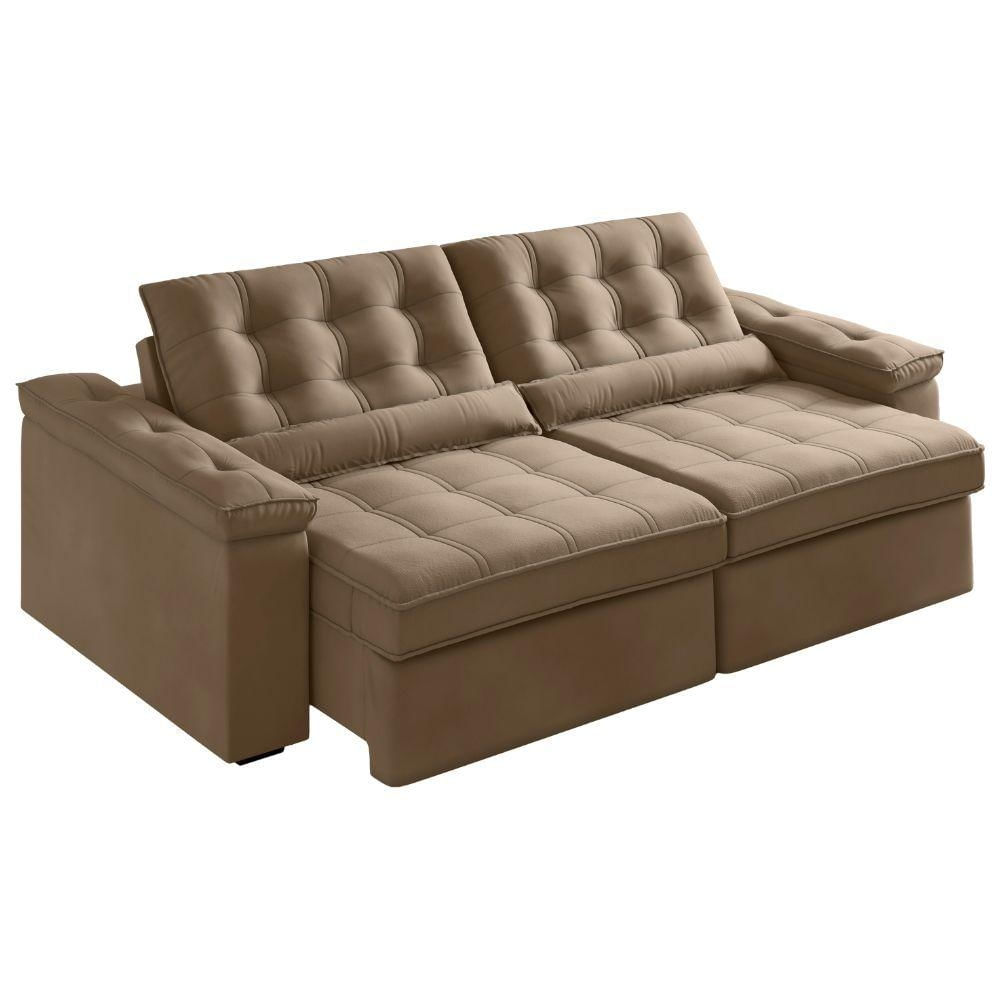 Sofá Retrátil E Reclinável 4 Lugares 2,52m Veludo Ilhéus Bege Castor