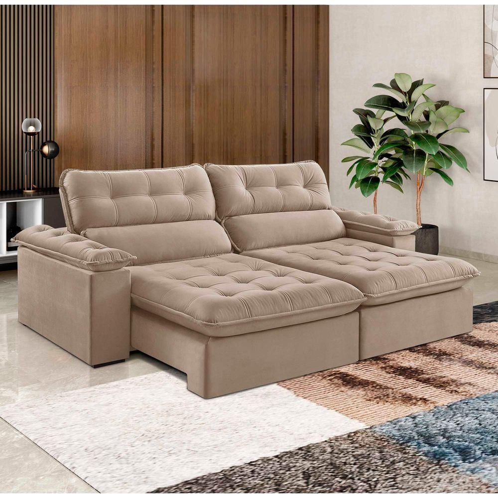 Sofá Retrátil e Reclinável Texas 2,54M VeludoImagine chegar em casa e ser recebido pelo abraço caloroso do Sofá Retrátil e Reclinável Texas, revestido em veludo luxuoso. Este sofá não é apenas um móvel; é um verdadeiro convite ao relaxamento, transformando sua sala em um refúgio de aconchego e estilo. O Sofá Texas é a perfeita união entre funcionalidade e conforto. Com cinco posições diferentes de reclinação, ele permite que você ajuste o encosto ao seu gosto, proporcionando o máximo de conforto em qualquer situação. Seja para esticar as pernas enquanto assiste a um filme, reclinar-se para uma leitura tranquila, ou deitar-se completamente para uma soneca revigorante, este sofá se adapta às suas necessidades, tornando cada momento especial.Os assentos amplos e acolhedores convidam você a se acomodar e desfrutar de momentos de pura tranquilidade, enquanto a estrutura robusta garante durabilidade e resistência. Sente-se, ajuste-se e deixe-se envolver pelo conforto inigualável do Sofá Retrátil e Reclinável Texas. Ele não apenas enriquece a decoração da sua casa, mas transforma cada instante em uma experiência única de aconchego e conforto. Descubra o prazer de ter um sofá que combina luxo, funcionalidade e um abraço caloroso, tudo em um único lugar.Especificações: Conteúdo da Embalagem: 1 Sofá - Entregue em: 2 VolumesMedida do Produto Montado: Altura:105 cm| Largura: 254 cm| Profundidade: 116cm medida Fechado