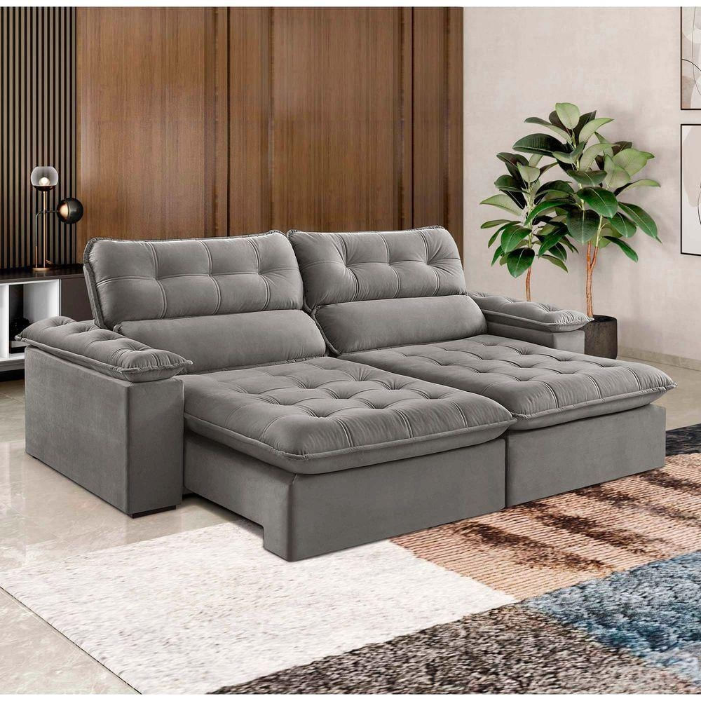Sofá Retrátil E Reclinável Texas 2,54m Veludo Cor Cinza 2103 Usb Sem Kit Usb