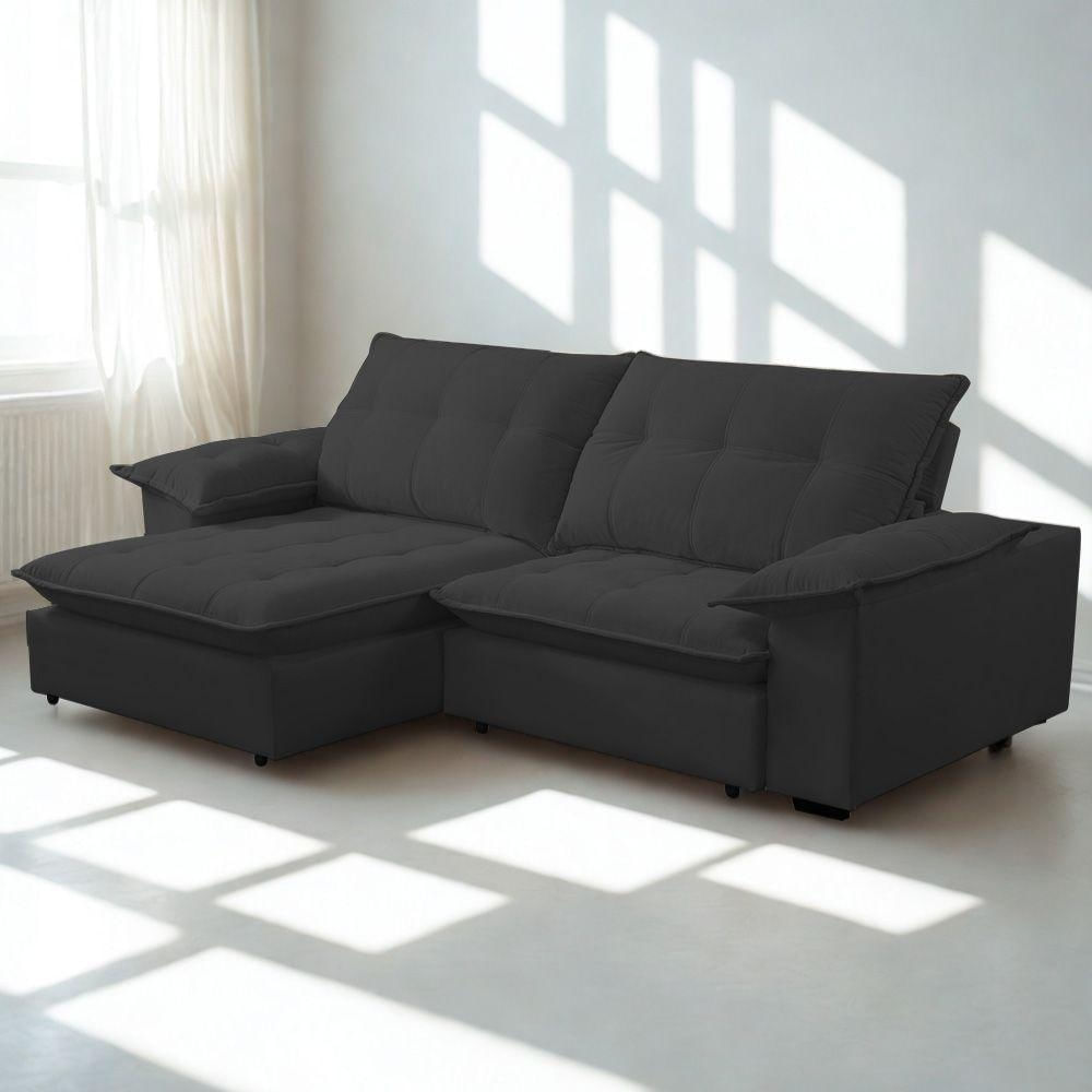 Sofá Retrátil E Reclinável Veludo 2,00m Lisboa - Conforto Premium E Design Elegante | Lansof Cores Grafite