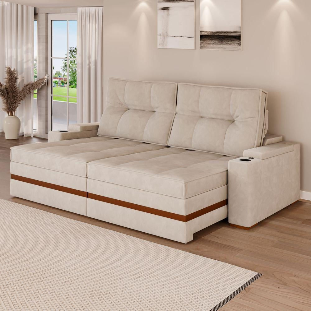 Sofá Retrátil e Reclinável Mônaco 4 Lugares 2,36m – Veludo CremeO sofá Mônaco retrátil e reclinável oferece máximo conforto para o dia a dia. Com 2,36m de largura e capacidade para 4 lugares, é ideal para relaxar e aproveitar momentos de descanso.Seu assento retrátil amplia o espaço para descanso e o encosto reclinável permite ajustar a posição para maior conforto.Destaques do produtoAssento retrátil para maior confortoEncosto reclinável ajustávelDesign moderno e eleganteRevestimento em Veludo CremeInformações do produtoModelo: MônacoTipo: Sofá retrátil e reclinávelLugares: 4Largura: 2,36mRevestimento: Veludo CremeEstrutura: Madeira de reflorestamentoAssento: Espuma de alta densidadePés: Pés resistentesObservações importantesAs cores do produto podem apresentar pequenas variações dependendo da tela do dispositivo.As medidas são aproximadas e podem variar alguns centímetros.Produto enviado desmontado, acompanhado de manual para montagem. Sofá Retrátil e Reclinável Mônaco 4 Lugares 2,36m – Veludo CremeO sofá Mônaco retrátil e reclinável oferece máximo conforto para o dia a dia. Com 2,36m de largura e capacidade para 4 lugares, é ideal para relaxar e aproveitar momentos de descanso.Seu assento retrátil amplia o espaço para descanso e o encosto reclinável permite ajustar a posição para maior conforto.Destaques do produtoAssento retrátil para maior confortoEncosto reclinável ajustávelDesign moderno e eleganteRevestimento em Veludo CremeInformações do produtoModelo: MônacoTipo: Sofá retrátil e reclinávelLugares: 4Largura: 2,36mRevestimento: Veludo CremeEstrutura: Madeira de reflorestamentoAssento: Espuma de alta densidadePés: Pés resistentesObservações importantesAs cores do produto podem apresentar pequenas variações dependendo da tela do dispositivo.As medidas são aproximadas e podem variar alguns centímetros.Produto enviado desmontado, acompanhado de manual para montagem.