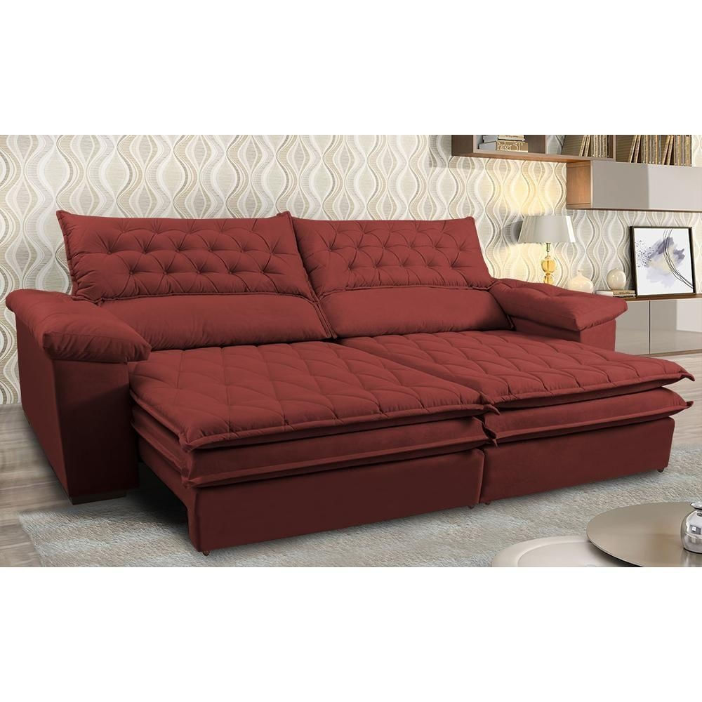 Sofá Retrátil, Reclinável Molas Ensacada Cama Inbox Botonê 2,52m Espuma Viscoelástico Suede Vermelho