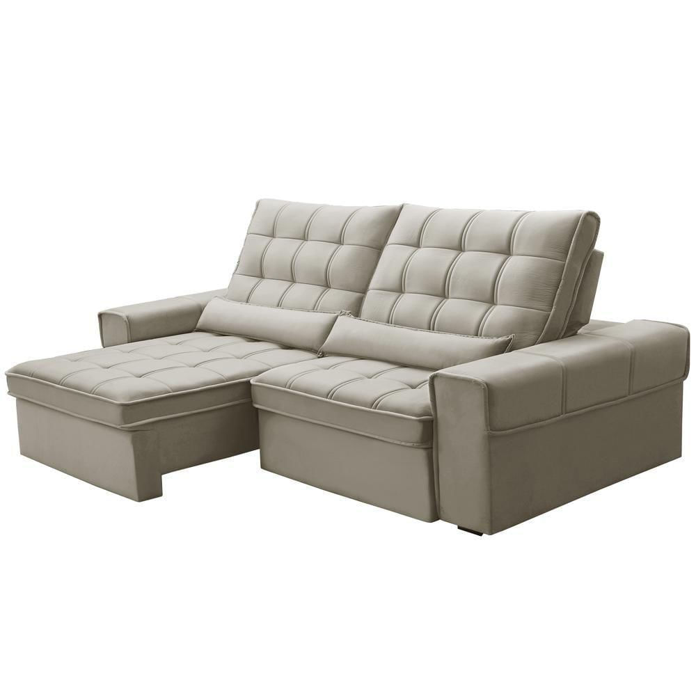 Sofá Retrátil Reclinável Para Sala 3 Lugares 250cm Nebrasca F04 Veludo Bege - Lyam Decor