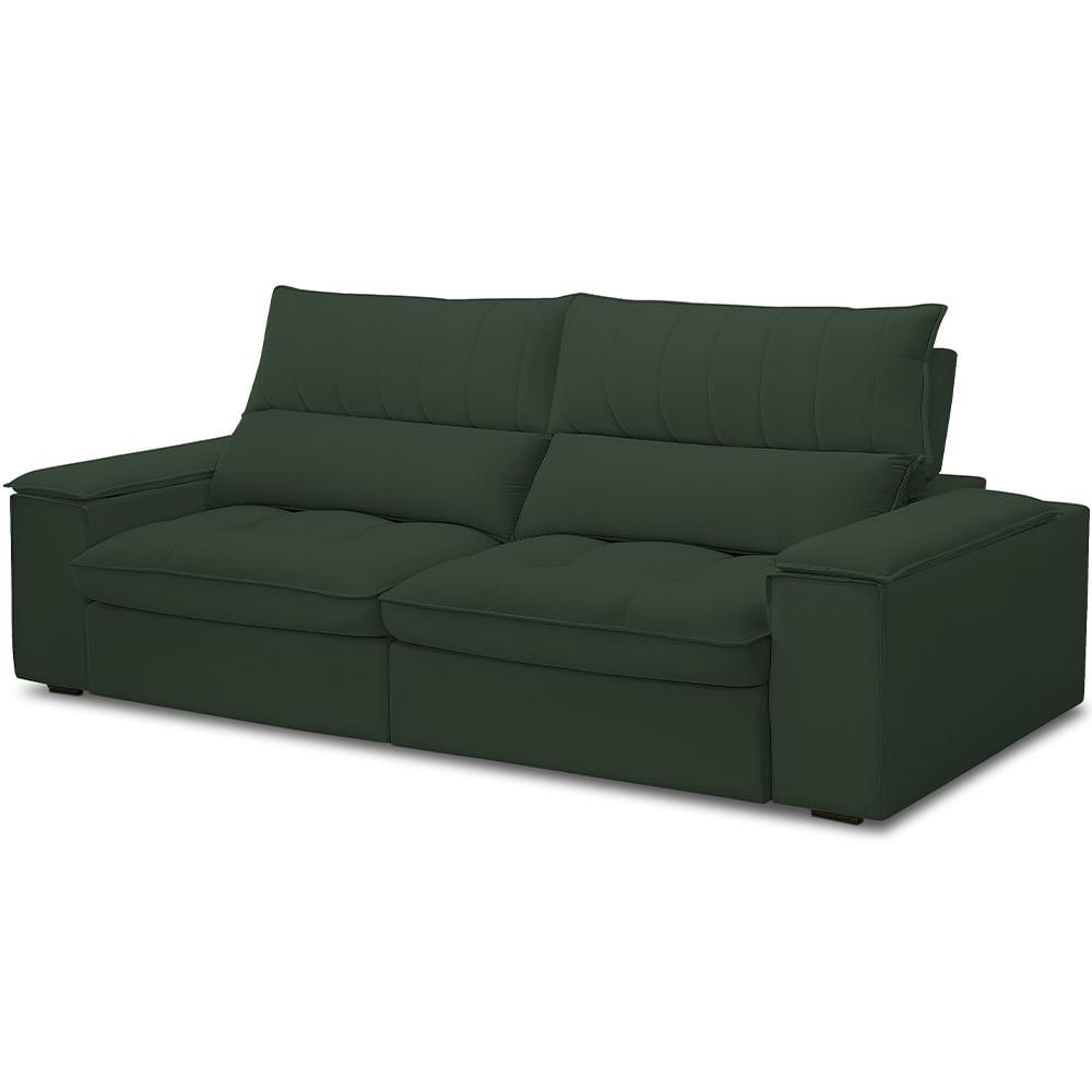 Sofá Retrátil Reclinável Para Sala de Estar Living 230cm Nápoles F04 Veludo Verde - Lyam Decor