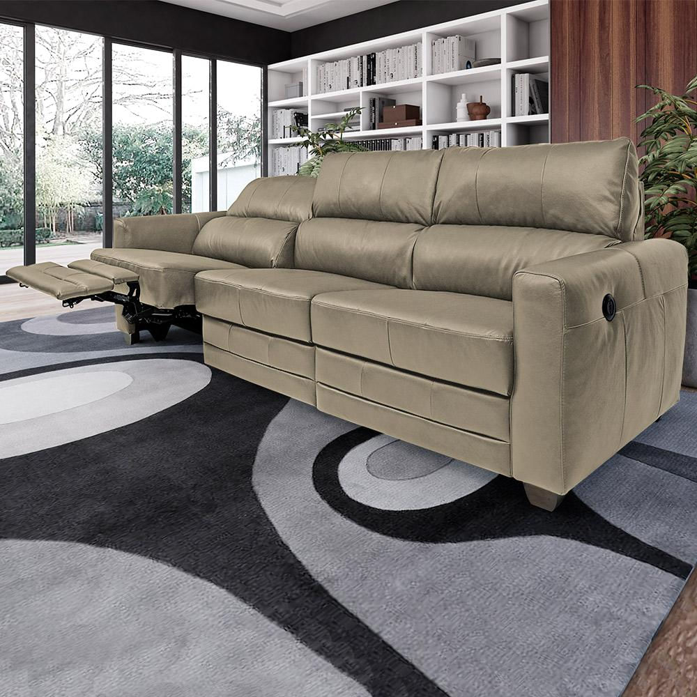 Sofá Sala de Cinema Elétrico Maldivas Reclinável Retrátil 4 Lugares 281cm Couro Avelã G40 - Gran Belo