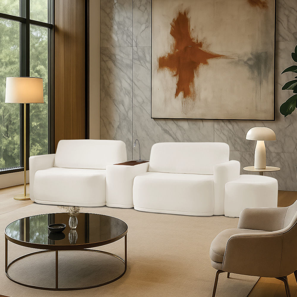 Sofá Sala Modulado 319cm com Puff Console USB Luminária Brumma Bouclê Off White K01 - D'Rossi