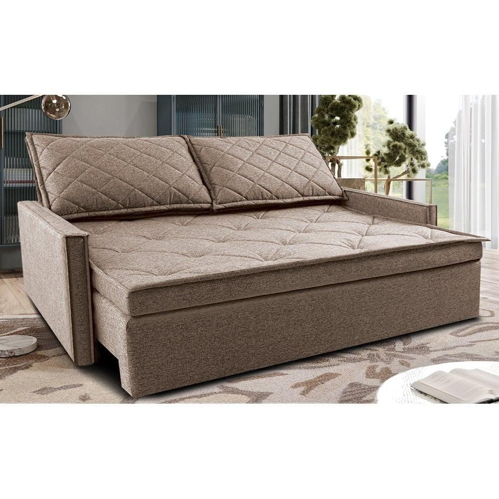 Sofá Sem Caixa Retrátil E Reclinável 1,65m Cama Inbox Loft Linho Bege Escuro