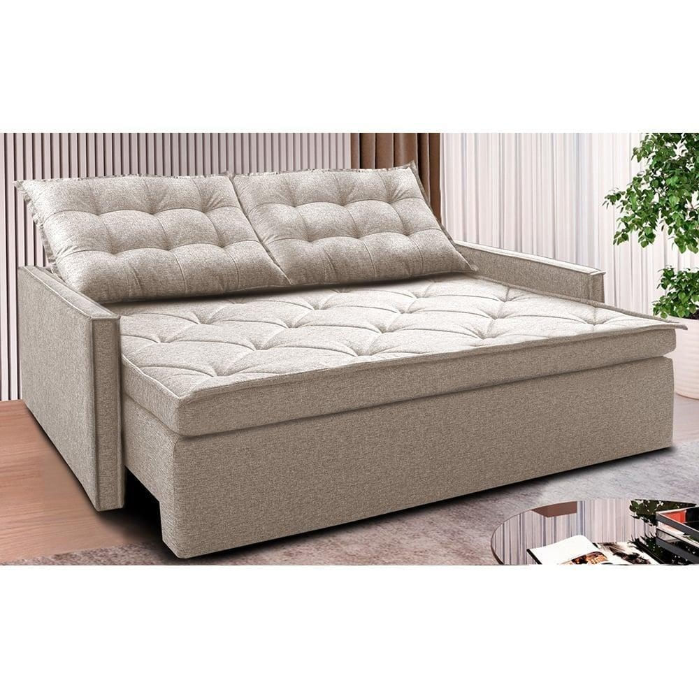 Sofá Sem Caixa Retrátil E Reclinável 1,85m Cama Inbox Flat Linho Bege Claro