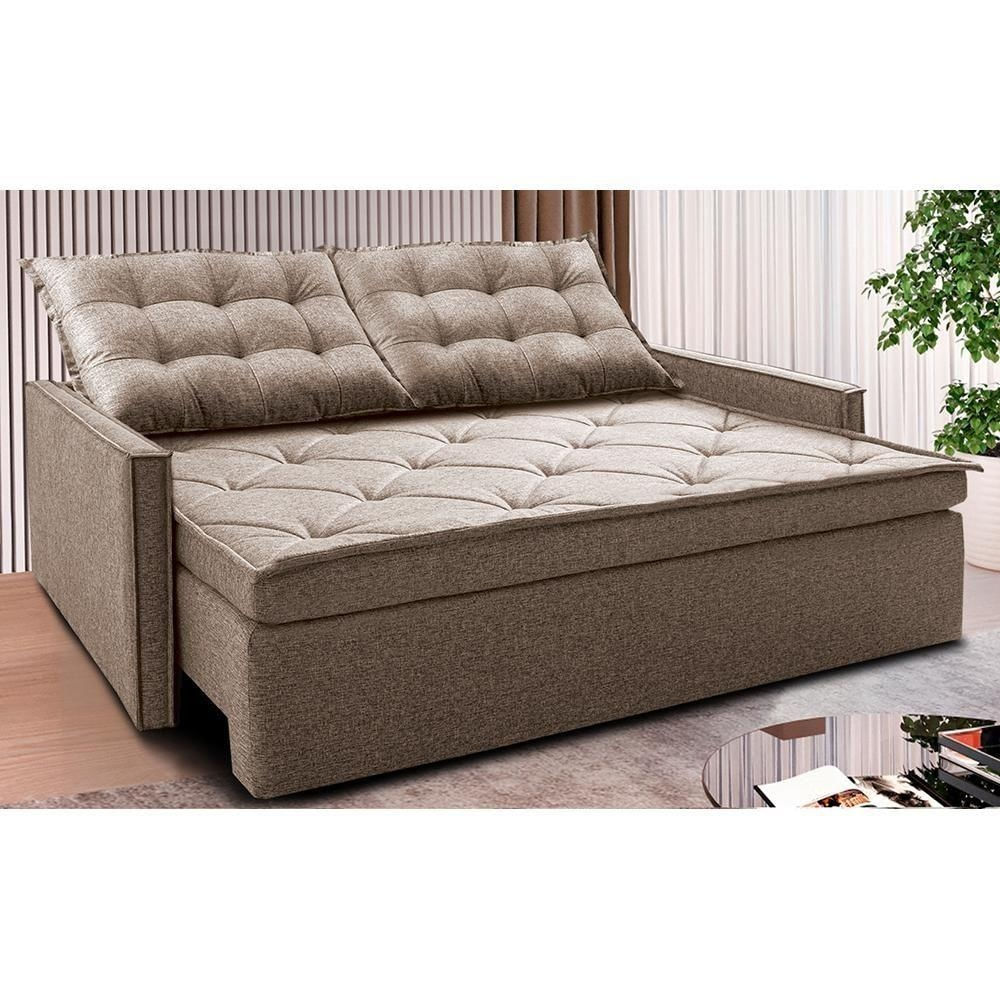 Sofá Sem Caixa Retrátil E Reclinável 1,85m Cama Inbox Flat Linho Bege Escuro
