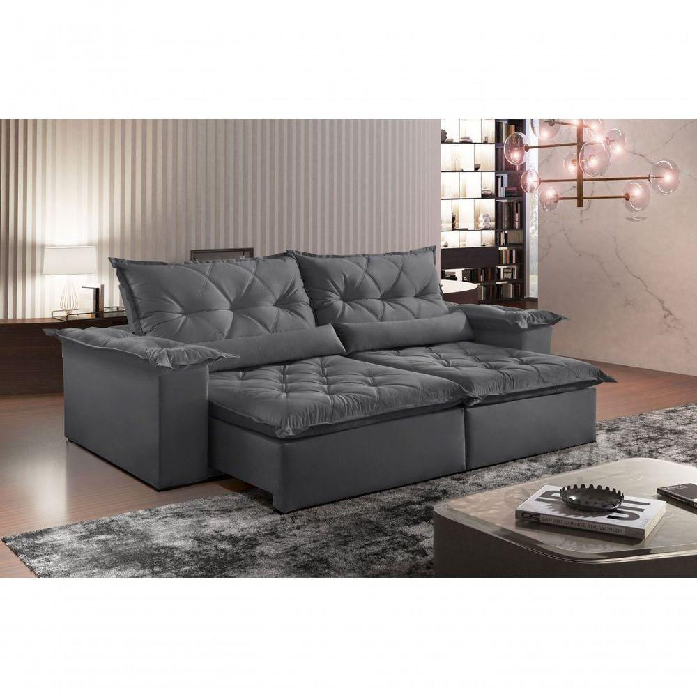 Sofá Ventura Retrátil E Reclinável 240m Pillow Com 20cm Fibra Siliconada - Grafite