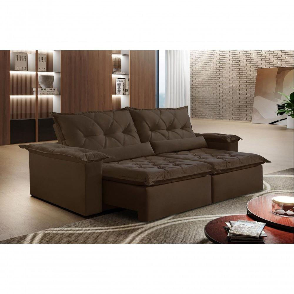 Sofá Ventura Retrátil E Reclinável 2,40m Pillow Com 20cm Fibra Siliconada - Marrom