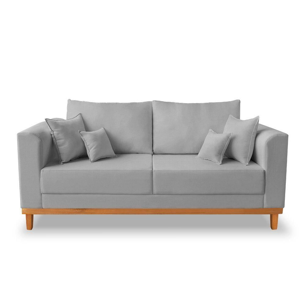 Sofá Viena Beny 03 Lugares Com Base De Madeira Linho Cinza