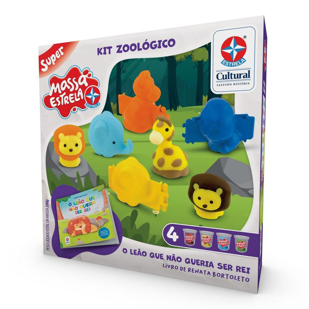 Marca: Estrela;Nome do produto: Super Massa Livro O Leão que Não Queria Ser Rei;Idade recomendada: A partir de 3 anos;Selo Inmetro: 008 213/2024;Contém: 1 livro de 24 páginas, 3 moldes 3D de animais, faquinha, rolinho, 4 potes de 50g de Massa Estrela e 1 cenário cartonado.