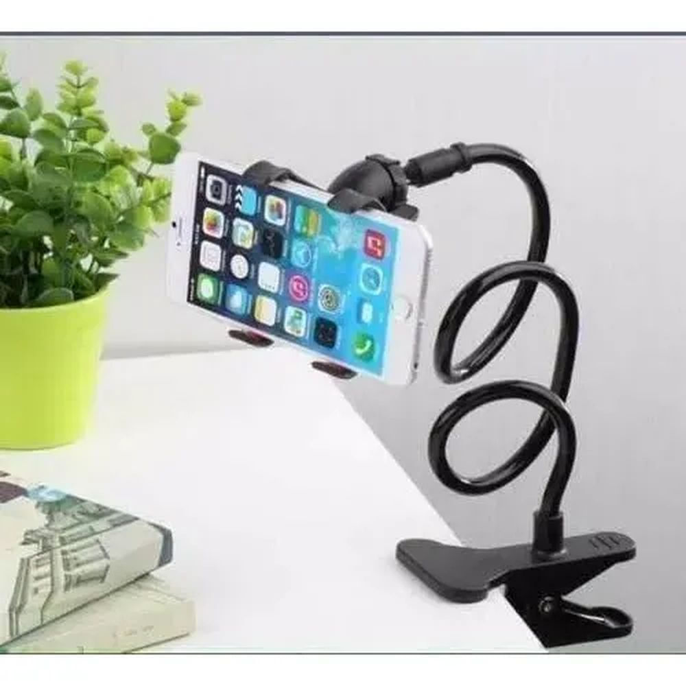Suporte para Celular Tipo Garra, ideal para fixação forte em mesas, carros e cabeceiras de cama Com uma haste flexível com movimentação 360, este suporte e perfeito para ter não precisar ficar segurando o celular e ainda ser possível colocar numa posição confortável para você /A garra de suporte tem uma fixação extra forte mas que não tem o perigo de estragar seu aparelho, graças as borrachas de amortecimento na garra O "Pescoço" do suporte e flexível porem muito estável.
