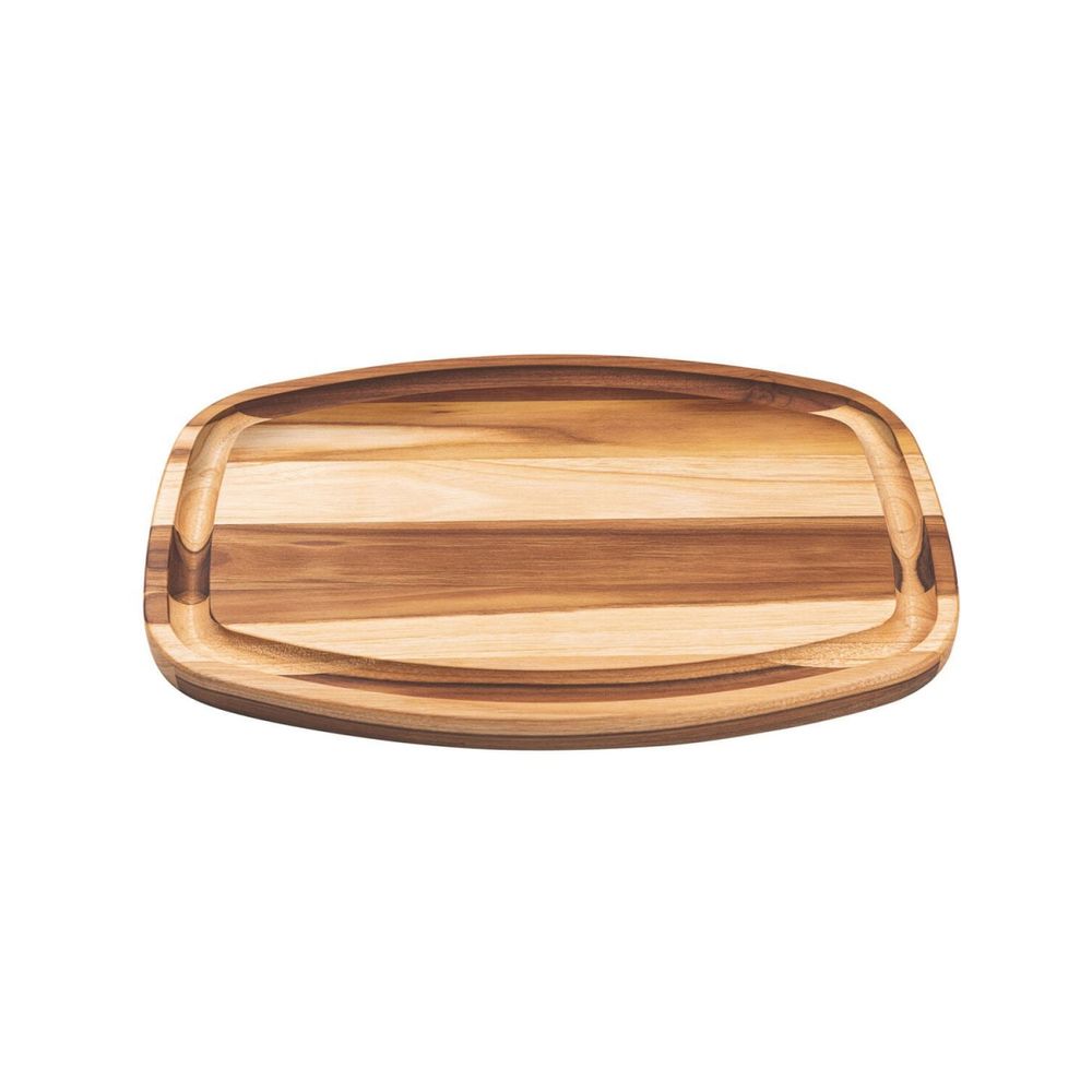 - Tábua para cortar e servir produzida em madeira tropical Teca de alta densidade com proteção de verniz atóxico