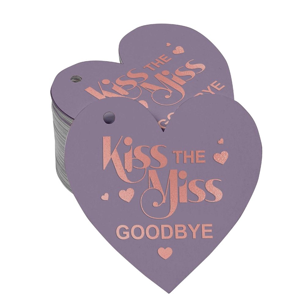 Tag de Papel Metalizado 'Kiss The Miss Goodbye' para Lembrancinha de Chá de Noiva e para Pendurar - Inkdotpot 50 Etiquetas Metalizadas / Roxo - Ouro Rosé