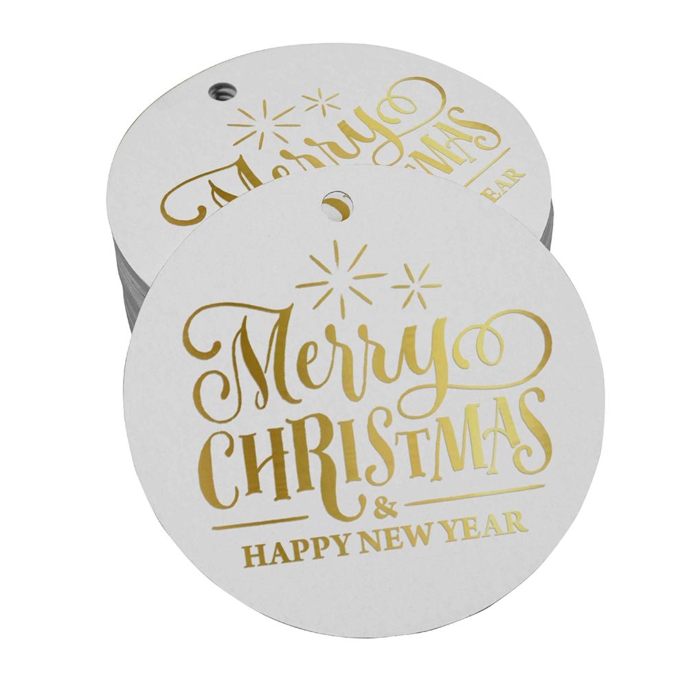 Tags de Papel para Pendurar em Lembrancinhas com Texto Metalizado 'Merry Christmas & Happy New Year' - Inkdotpot 50 Etiquetas Metalizadas / Branco - Dourado