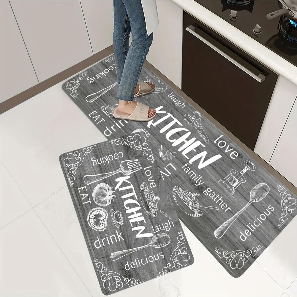 5. Surpreenda seus amigos com este conjunto de tapetes de cozinha antiderrapantes! Seu design acolchoado, fundo antiderrapante e bordas chanfradas proporcionam segurança e conforto, evitando escorregões ou quedas. Não é apenas adequado para uso na cozinha, mas também pode ser utilizado em diversos ambientes, como escritórios, quartos ou até como capacho. Fácil de limpar e durável, este conjunto de tapetes é uma opção prática e estilosa para qualquer ocasião.