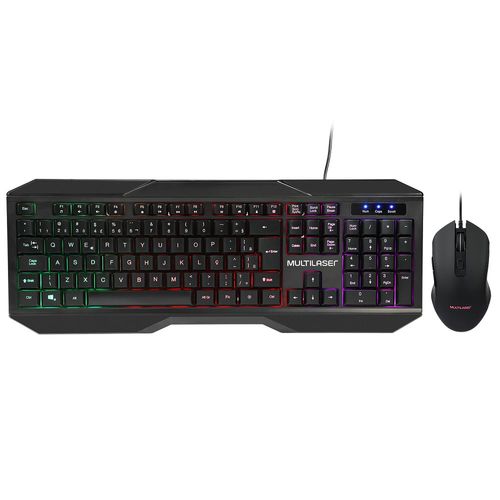 O Combo Teclado e Mouse Gamer da Multilaser, será um grande aliado nas suas partidas! O Mouse contém 6 BOTÕES, DPI de 800, 1600, 2000 e 2400; 7 cores de LED em modo pulsante, cabo USB de 1,5 metros de comprimento e um impressionante ciclo de vida dos botões de 3 milhões de cliques. Já o Teclado foi desenvolvido com a norma da ABNT, com 3 cores de luz de LED fixas para melhor visualização e desempenho nos jogos, TECLAS SILENCIOSAS e MUITIMÍDIA para que tenha a experiência de uma digitação silenciosa, confortável e prática. O cabo também contém 1,5 metros de comprimento, sua interface USB 2.0 e ciclo de vida dos botões de 10 milhões de cliques. Um produto COMPLETO e extremamente FUNCIONAL. Com o Combo Teclado e Mouse Gamer da Multilaser, suas partidas não serão mais as mesmas!Imagens Meramente Ilustrativas*