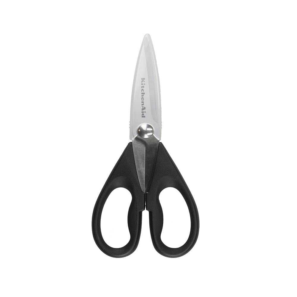 A tesoura multifuncional KitchenAid é um item valioso para ser adicionado aos seus utensílios e ideal para uma infinidade de tarefas para a sua cozinha e em toda a casa. As bordas da lâmina apresentam micro serrações para proporcionar uma experiência de corte superior. Durável e forte, esta tesoura de cozinha é feita de aço inoxidável resistente, para o uso diário e dispõe de alças macias com uma borda em silicone, que fornecem conforto e controle durante o uso. A tesoura vem com um protetor de lâmina para maior durabilidade e proteção quando armazenada.