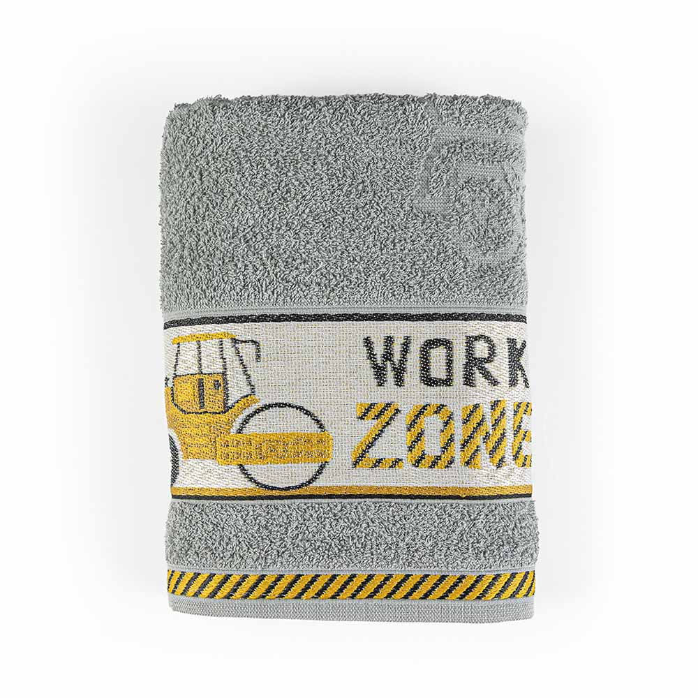 Toalha de Banho Infantil Pitico 1,15m x 75cm 100% Algodão Macio - Trator Manny Cinza