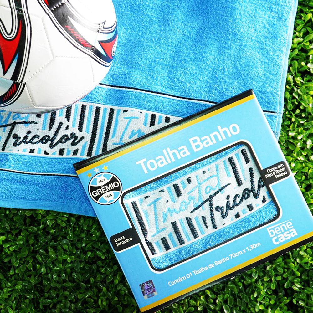 Toalha de Banho KazzaVip Felpuda 90%Algodão Grêmio Caixa de Presente Times 70cmx130m Azul
