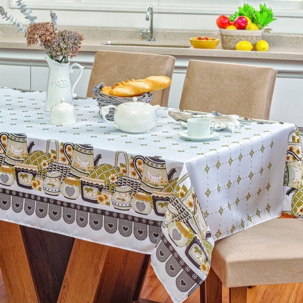 Toalha De Mesa Vilela Em Oxford Retangular 2,10m X 1,40m 100% Poliéster - Bule Chá