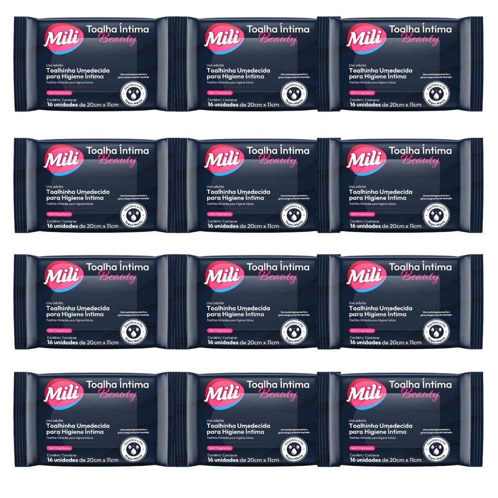 Toalha Íntima Beauty - Toalhinha Umedecida p/ Higiene ÍntimaMarca: Mili12 pacotes com 16 unidades de 20x11cm (total: 192 toalhinhas)Toalhinha Umedecida para Higiene Íntima - uso adultoPH EquilibradoDermatologicamente e ginecologicamente testadoSuper macioCom extrato natural de chá branco e ácido lácticoFórmula a base de águaHipoalérgicaAção antioxidanteProduto não oleoso