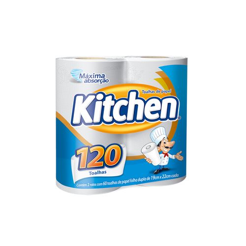 O Papel Toalha Kitchen é uma ótima opção para quem busca praticidade na hora de absorver frituras de alimentos, na secagem de louças e superfícies, para embrulhar lanches e frutas ou para auxiliar na limpeza da casa. São 2 rolos com 60 toalhas de papel folha dupla com máxima absorção.