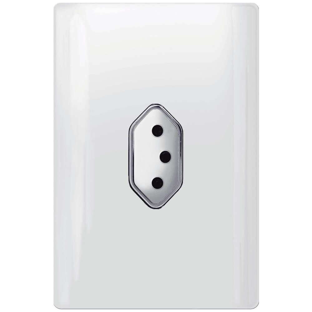 Tomada Universal Vertical 2p+t 20a Com Placa 4x2 Branca E Cromada - Dc 1200-13 - Novara