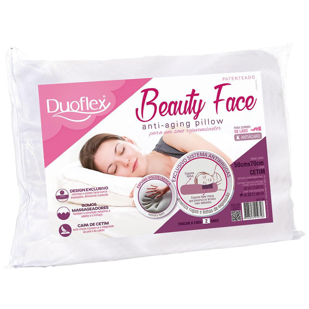 Travesseiro Duoflex Beauty Face Nasa em Espuma Viscoelástica e Espuma Soft de Poliuretano Branco