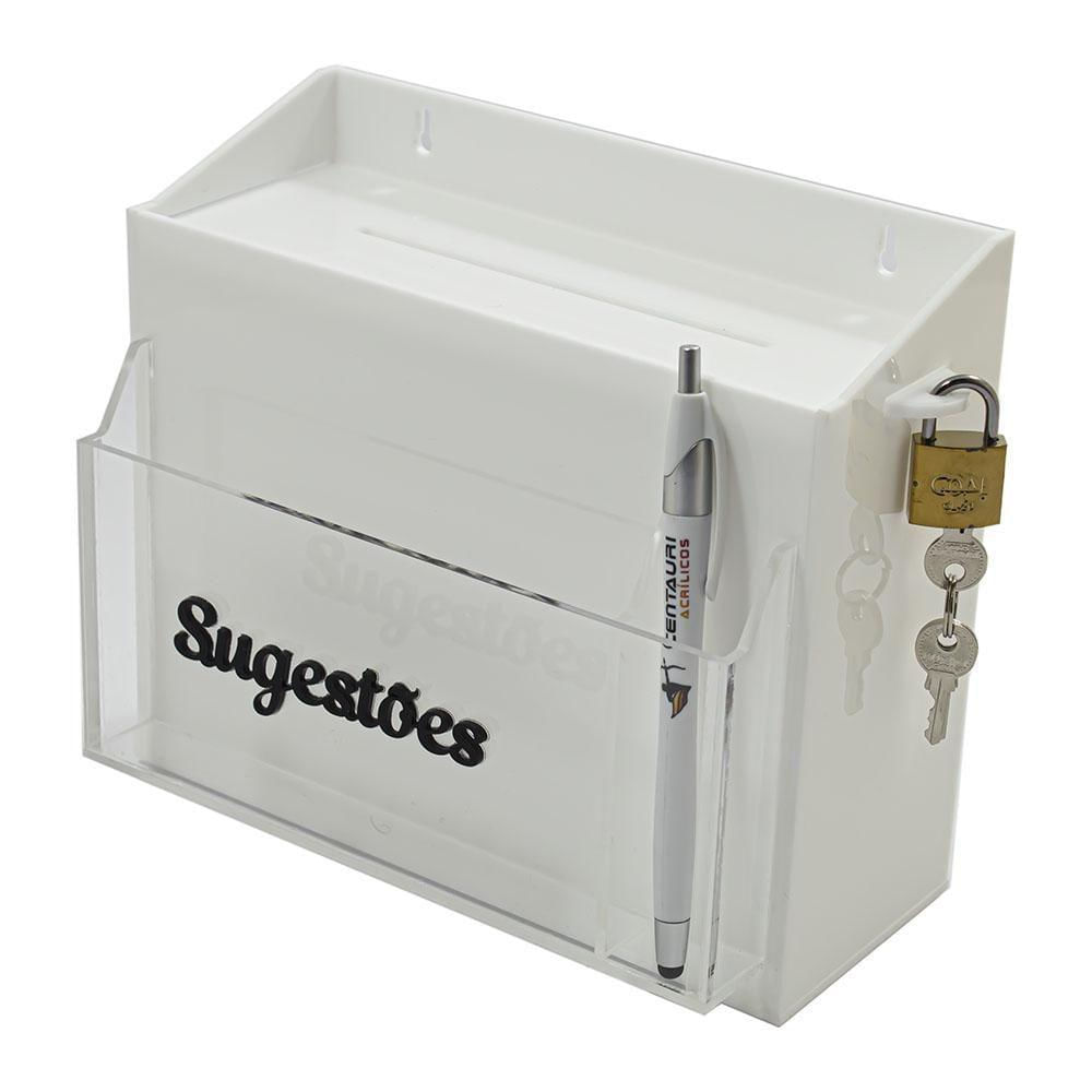 Urna Caixa De Sugestões Parede Bolso Frontal Em Acrílico Branca E Cadeado Pesquisa Satisfação