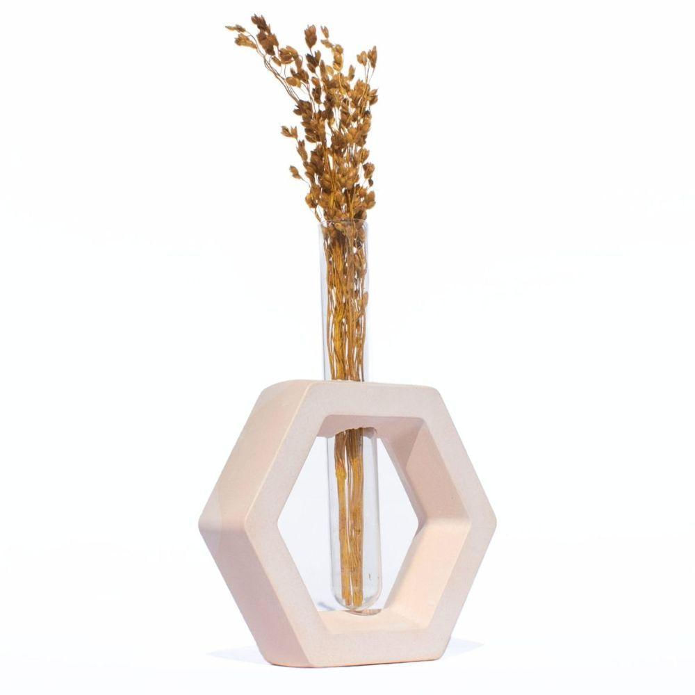 Vaso Decorativo Solitário Hexa 16,5cm Artesanal Em Cimento Palha