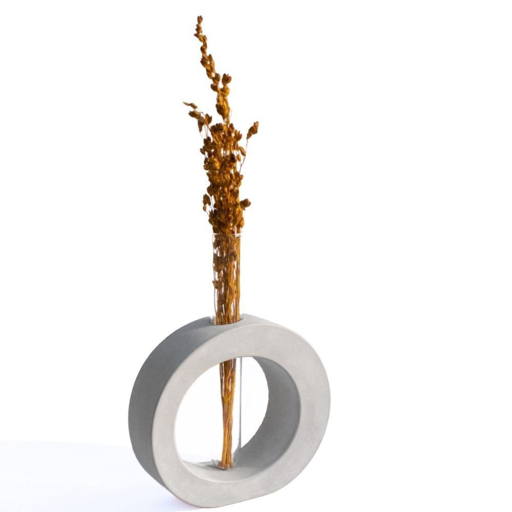 Vaso Decorativo Solitário Redondo 16,5cm Artesanal Em Cimento Cinza