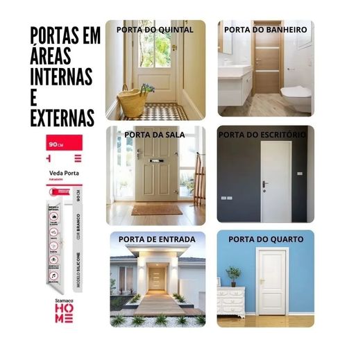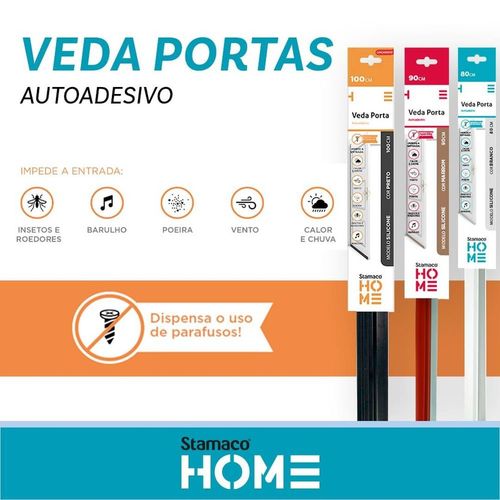 Veda Porta Com Adesivo 3m 90cm Rodo Silicone Branco Stamaco