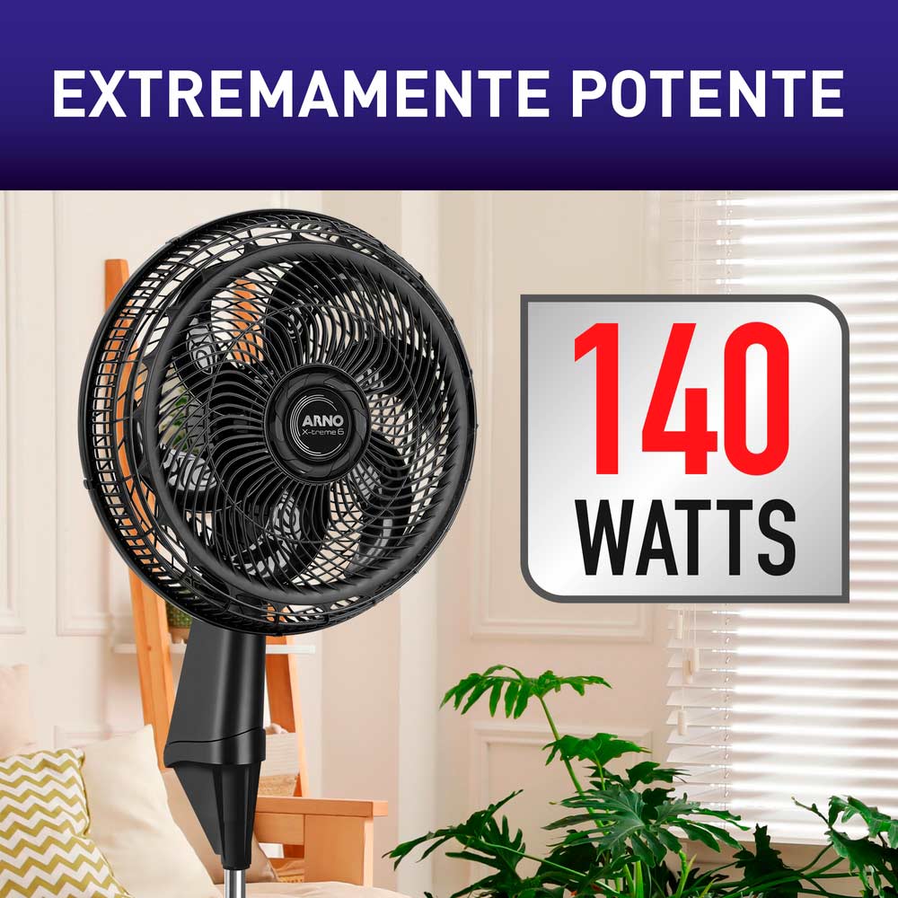 O Ventilador de Coluna 40cm Arno X-TREME 6, possui um longo alcance de ar de até 10m , suas 6 pás e potência de 140W garantem alta performance e conta a grade Chevron Zone que diminui o ruído, proporcionando uma ventilação potente e mais silenciosa.